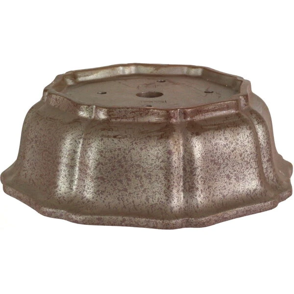 Bonsaischale (unglasiert, dunkelbraun, achteckig) in den Abmessungen: 23cm Länge, 23cm Breite, 7.5cm Höhe. Sehr gute Qualität aus der berühmten Töpferstadt Yixing.