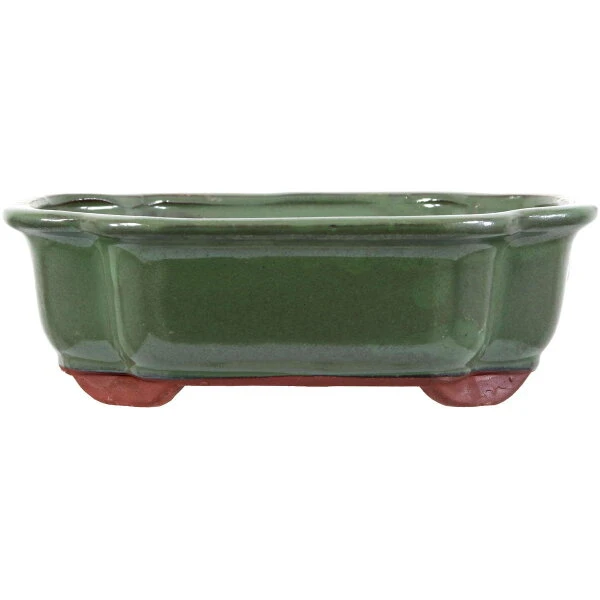 Bonsaischale (glasiert, hellgrün, sonstige form) in den Abmessungen: 25.5cm Länge, 20.5cm Breite, 8cm Höhe. Gute Standardqualität aus der Töpferstadt Yixing.