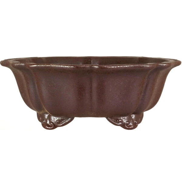 Bonsaischale (unglasiert, dunkelbraun, achteckig) in den Abmessungen: 26.5cm Länge, 26.5cm Breite, 9.5cm Höhe. Sehr gute Qualität aus der berühmten Töpferstadt Yixing.