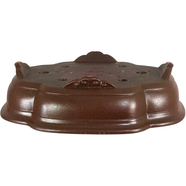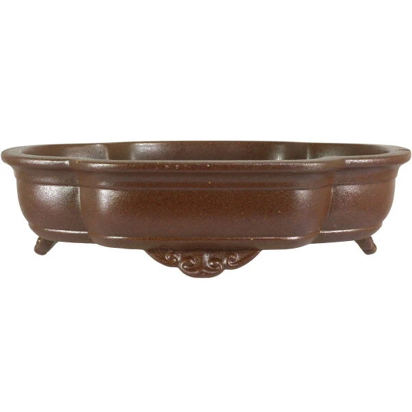 Bonsaischale (unglasiert, dunkelbraun, lotusfã¶rmig) in den Abmessungen: 30.5cm Länge, 26cm Breite, 8cm Höhe. Sehr gute Qualität aus der berühmten Töpferstadt Yixing.