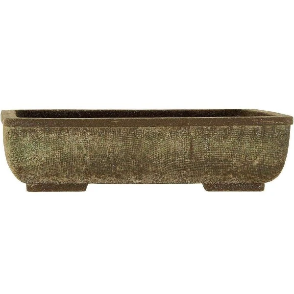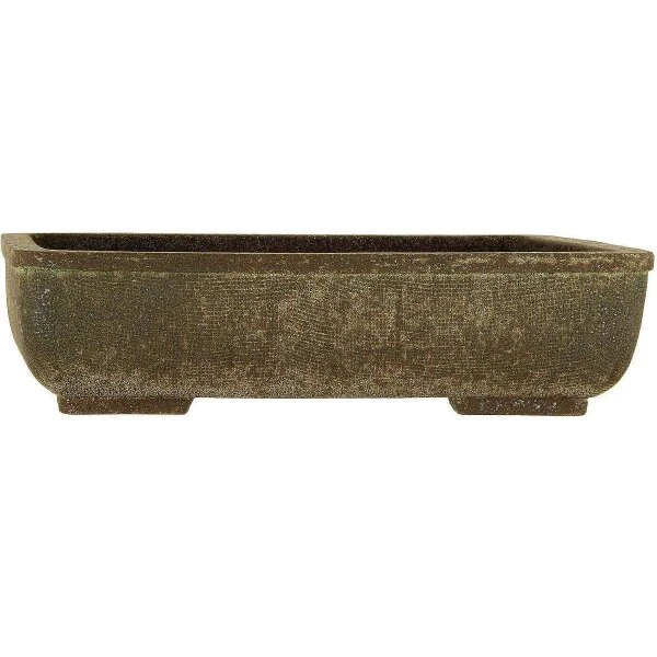 Bonsaischale (Unglasiert, Braun-Hellgrau, Rechteckig), handgemacht, in den Abmessungen: 30cm Länge, 22cm Breite, 8cm Höhe.