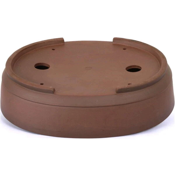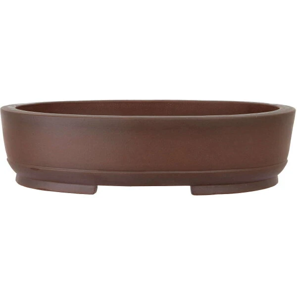 Bonsaischale (unglasiert, antik-braun, oval), handgemacht, in den Abmessungen: 44cm Länge, 35.5cm Breite, 11cm Höhe.