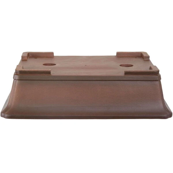 Bonsaischale (unglasiert, antik-braun, rechteckig), handgemacht, in den Abmessungen: 46cm Länge, 36.5cm Breite, 12cm Höhe.