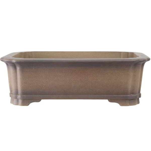 Bonsaischale (unglasiert, antik-grau, rechteckig), handgemacht, in den Abmessungen: 47cm Länge, 36cm Breite, 14.5cm Höhe.