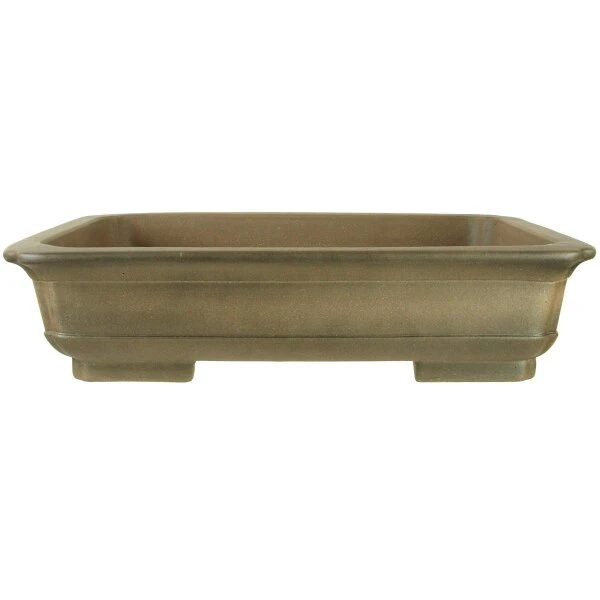 Bonsaischale (unglasiert, antik-grau, rechteckig), handgemacht, in den Abmessungen: 50cm Länge, 40.5cm Breite, 12cm Höhe.