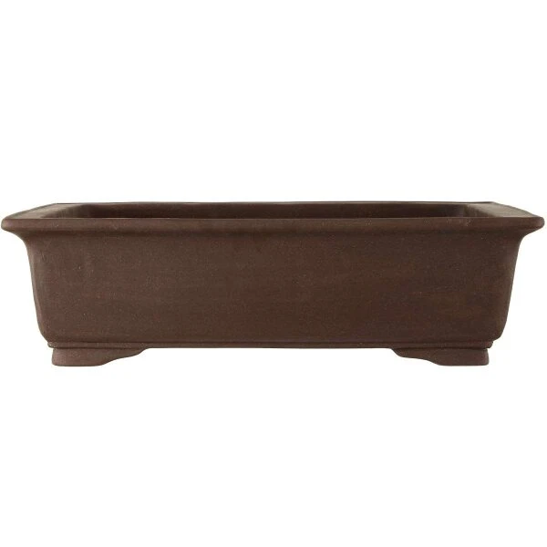 Bonsaischale (Unglasiert, Dunkelbraun, Rechteckig), handgemacht, in den Abmessungen: 55cm Länge, 41cm Breite, 15.5cm Höhe.