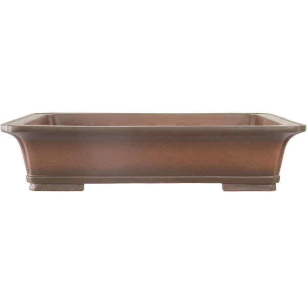 Bonsaischale (unglasiert, antik-braun, rechteckig), handgemacht, in den Abmessungen: 56.5cm Länge, 43cm Breite, 12.5cm Höhe.